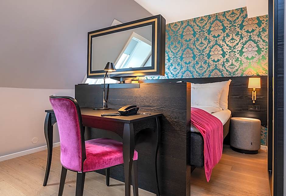 The Thon Hotel Rosenkrantz Bergen offers a variety of room types including standard twin rooms with two twin beds, small double rooms with a double bed recommended for single occupancy, business double rooms with a double bed, standard single rooms with a twin bed for single occupancy, superior double rooms with a double bed, and standard double rooms with a double bed. All rooms are non-smoking and have different sizes ranging from 86 sqft to 161 sqft. Occupancy varies from 1 to 4 adults depending on the room type.