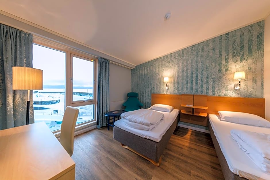 As a guest at Ørland Kysthotell, you'll enjoy a range of luxurious and well-appointed room options to suit your needs. Whether you're traveling with a friend or loved one, the Deluxe Twin Room offers two comfortable twin beds and a spacious 161 sqft area. With a stunning ocean view, you can wake up to the beauty of the coast right from your window.