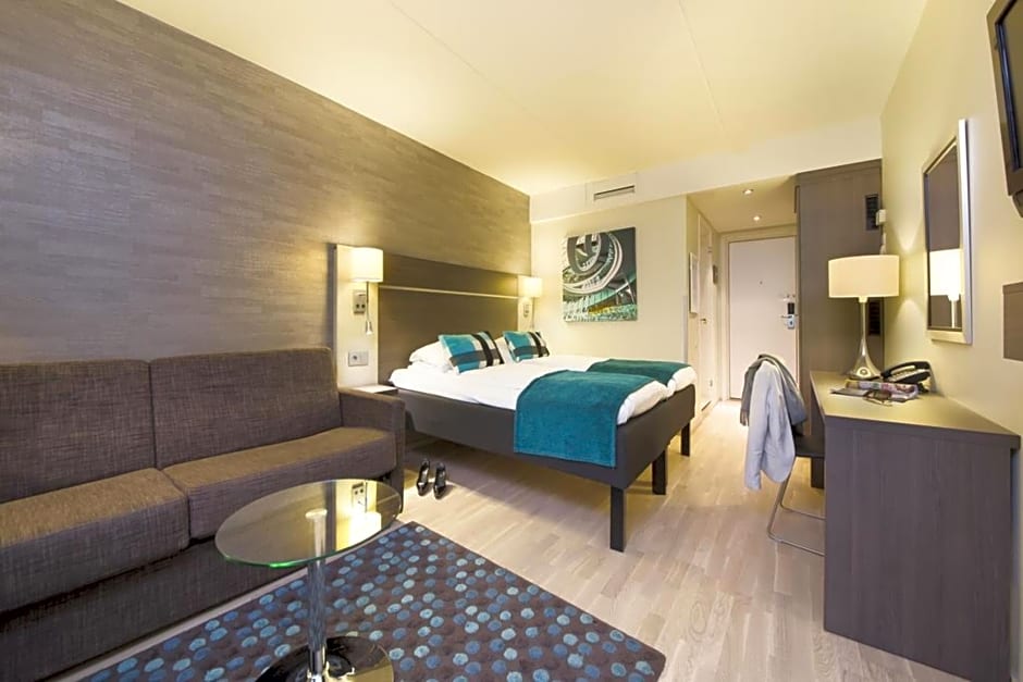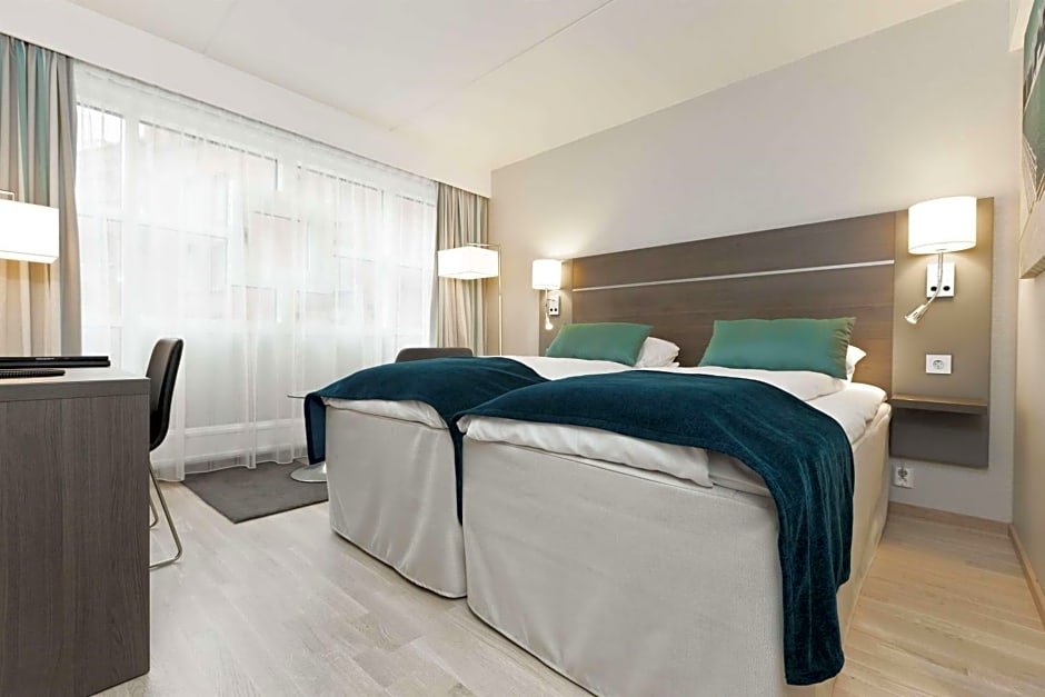 The Scandic Victoria hotel offers a variety of room options, including Standard Twin Room, Superior Queen Room, Family Room, Standard Queen Room, and Superior Twin Room. The rooms range in size from 161 sqft to 215 sqft. Smoking is not allowed in any of the rooms. Occupancy varies from 1 adult to 2 adults with up to 3 children. The bed sizes include twin beds, queen size bed, and a sofa bed in the Family Room.