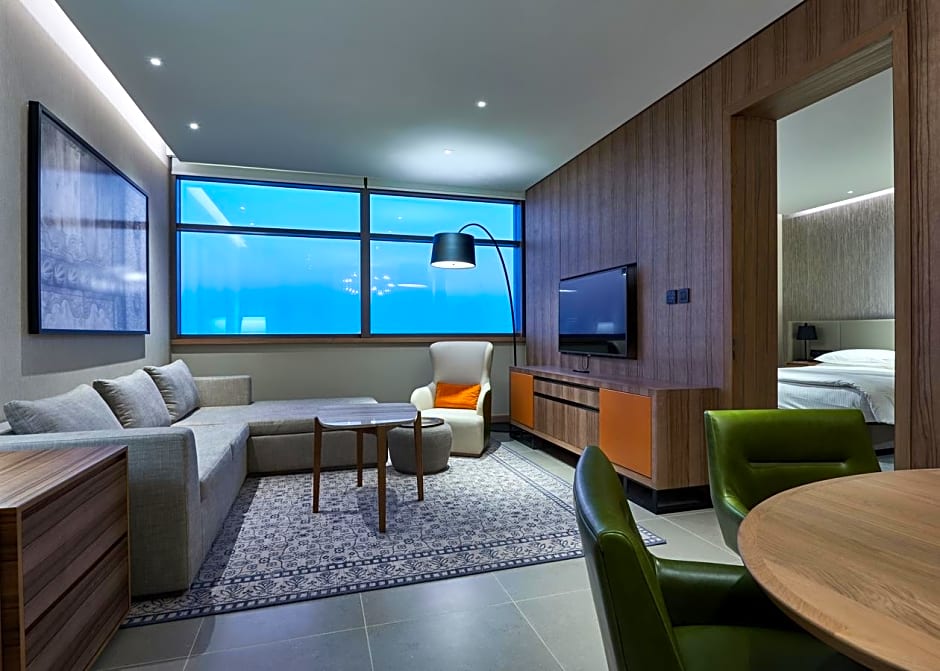 A medida que tu día llega a su fin, retírate a uno de los espaciosos alojamientos del hotel, cada uno diseñado pensando en tu comodidad. Desde lujosas habitaciones deluxe hasta amplias suites, seguro encontrarás un espacio que se sienta como en casa. Disfruta de las comodidades del aire acondicionado y la insonorización para una noche de sueño ininterrumpido, y respira el aire fresco en tu balcón privado. Ya sea que viajes con familia o amigos, [Mysk Al Mouj Hotel] ofrece una variedad de tipos de habitaciones listas para satisfacer todas tus necesidades llenas de aventuras. Date un capricho con una escapada donde la relajación, la deliciosa gastronomía y las impresionantes vistas te esperan: ¡tu perfecta escapada a Muscat está a solo una reserva de distancia!