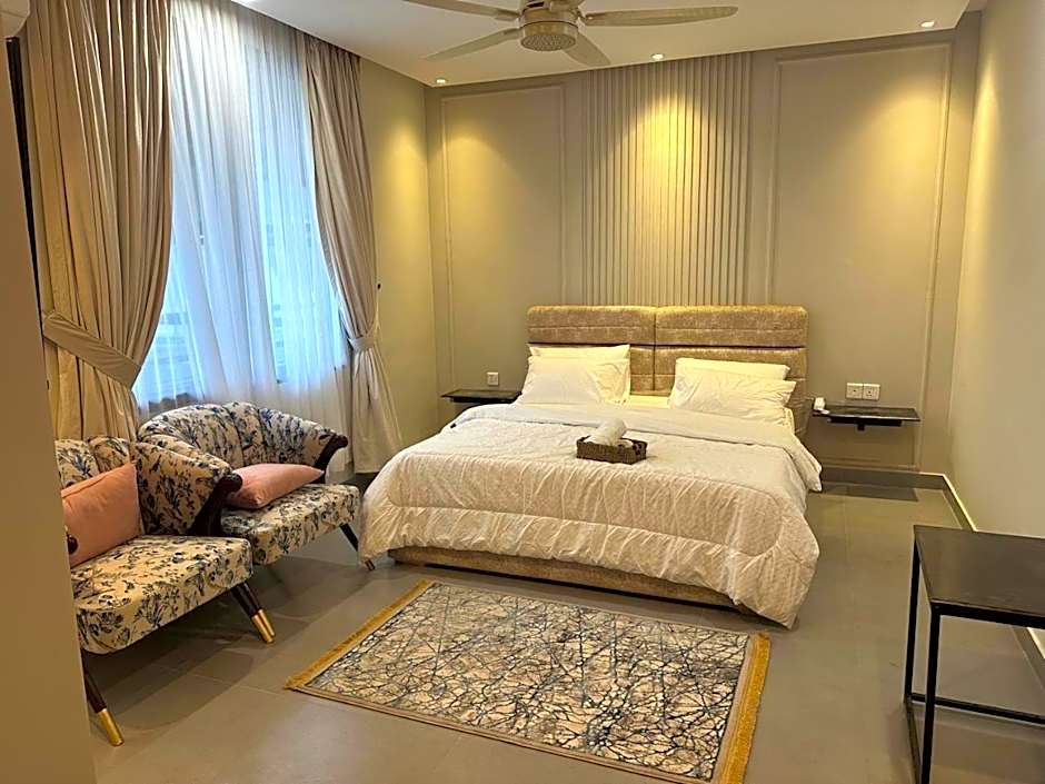 Hotel La Orilla Muzaffarabad offers a variety of rooms including Superior Suites with Sea View, Deluxe Double Rooms, Executive Suites, Deluxe Twin Rooms, Triple Rooms, and Double Rooms with Lake View or Balcony. The rooms can accommodate 2 to 3 adults and feature smoking-free environments with bed options including double, twin, and king-sized beds. Room sizes range from 1679 sqft to 1841 sqft, providing ample space for guests to enjoy their stay.