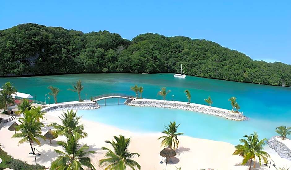 Welcome to Palau Royal Resort, a luxurious 4-star property located in Koror, Palau. Situated just 1,2mi from the city center, this beachfront resort offers a perfect blend of relaxation and convenience. With a stunning private beach area, outdoor swimming pool, and even a steam room, guests can unwind in style.