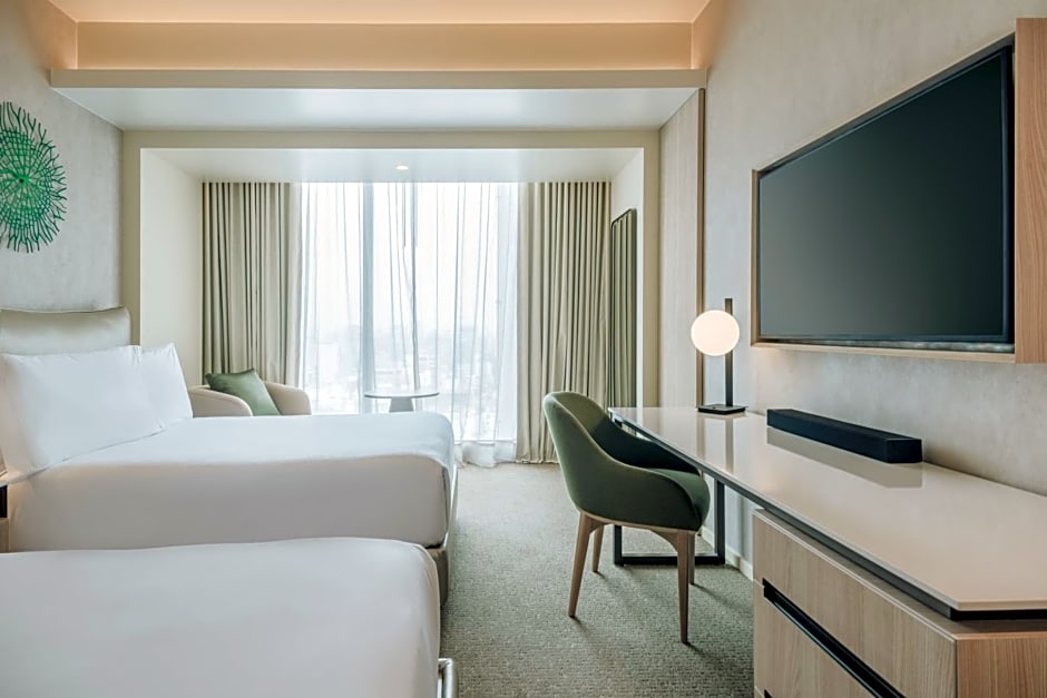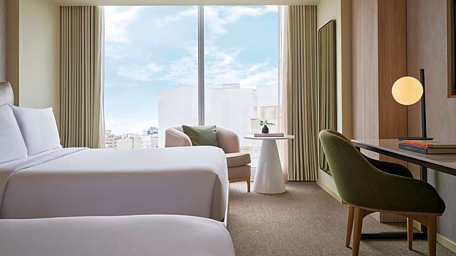 Double Superior City view is 291 square feet and includes 2 queen-size beds 150-154 width plus desk, cable tv, hairdryer, tea and coffee making facilities , safe, bathrobes, and slippers and is Wheelchair-accessible.