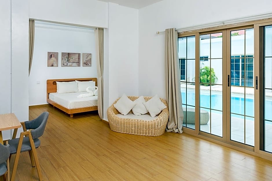 Imagine lounging by the outdoor swimming pool or letting the kids splash in the dedicated kids' pool, all within a lush garden setting. Each room boasts modern comforts such as air conditioning, soundproofing, and a private balcony overlooking the garden. Whether you're catching up on your favorite streaming series, enjoying room service, or taking a relaxing bath in the bathtub, every detail has been considered for your enjoyment.