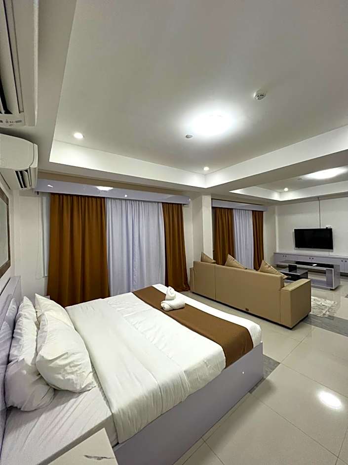 A diverse lineup of room options awaits, including Deluxe King Room, Superior Double Room, Studio, Suite, Penthouse Studio, Penthouse Suite, and Dormitory-type layouts. The Deluxe King Room features a king bed, while the Studio offers a sofa bed and a queen bed, and the Suite combines a king bed with a sofa bed—great for pairs or small groups. Dormitory options and other layouts provide budget-conscious choices, with various bed configurations like twins, doubles, and sofa beds to fit different travelers.