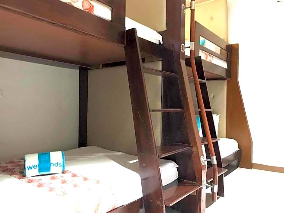 Room choices span a range of styles and capacities. The Suite offers a king-size bed and space for up to 2 adults and 1 child, while the Family, Balcony features two Queen beds for up to 4 adults and 2 children. Other options include Dormitory (4 Bed, Shared Bathroom), Family (Private Bathroom), Quintuple Room, Villa, Deluxe (King), Superior (Queen), as well as Standard variations like Standard, 4 Bed (Shared Room), Standard, 1 Bed, and Standard Room. Only cash is accepted for payment. Address: Barangay Corong Corong El Nido, El Nido, Philippines, about 1,3 миль from the city center.