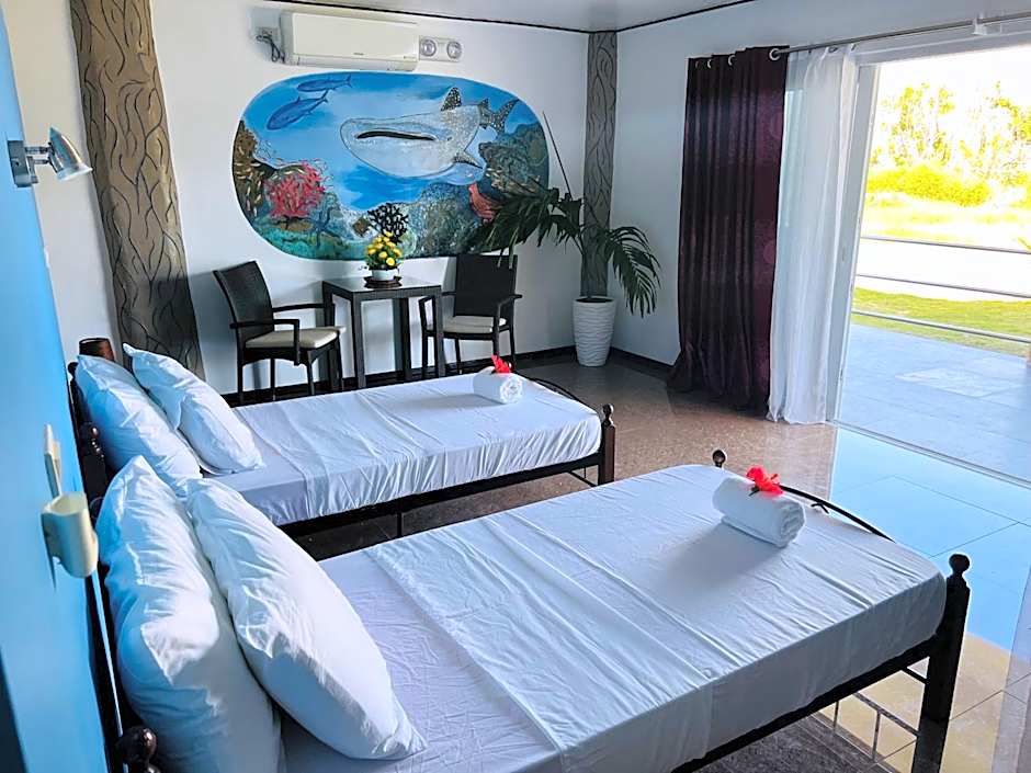 Unleash your inner aquatic explorer with complimentary snorkeling gear, or take a dip in the sparkling outdoor swimming pool. And don't forget to treat your taste buds at the on-site restaurant, offering delightful meals to fuel your island adventures. Feel free to enjoy the complimentary Wi-Fi while lounging on the sun deck, or join in on a fitness session at the well-equipped center. With numerous amenities like air conditioning, private entrances, and even babysitting services, Cabilao Sunset Dive & Beach Resort truly caters to everyone!