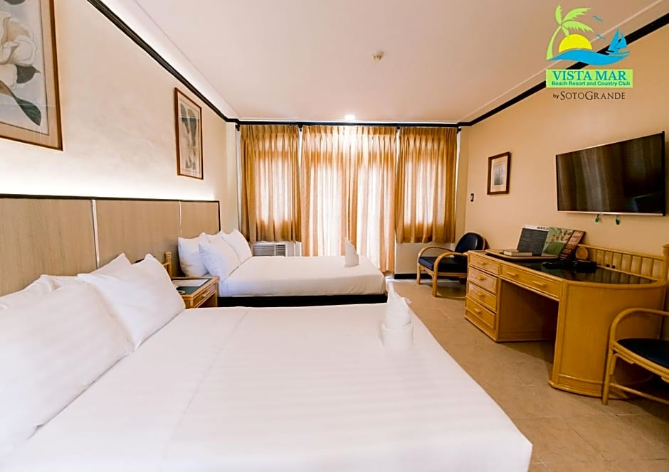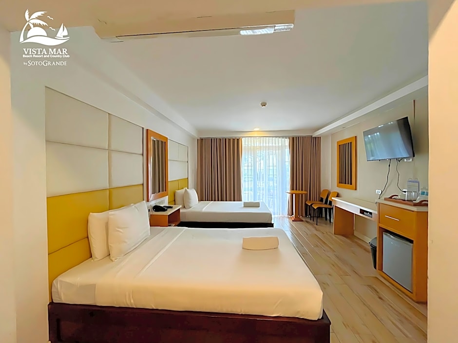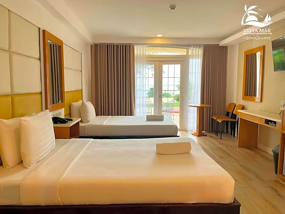 Rooms at Vista Mar Beach Resort and Country Club include options with sea views, 1 Queen bed, and 2 beds, accommodating 2 adults and 1 child. Smoking is not allowed in any of the rooms. Bed sizes vary from Queen to unspecified.