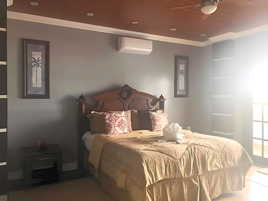 Boasting a private entrance, this air-conditioned suite features 1 living room, 2 separate bedrooms and 3 bathrooms with a walk-in shower and a bath. Guests will find a stovetop, a refrigerator, kitchenware and an oven in the kitchen. The suite also comes with a barbecue. Featuring a terrace with garden views, this suite also features a mini-bar and a flat-screen TV with cable channels. The unit has 4 beds.