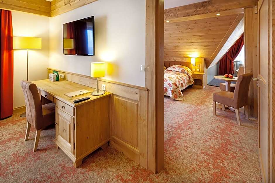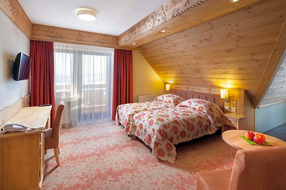 Hotel Bania Thermal & Ski offers a variety of rooms, including Standard and Superior rooms for double occupancy, Superior Double Rooms with unlimited access to Terma Bania for three adults, and Deluxe Apartments with unlimited access to Terma Bania for four adults. Smoking is not allowed in any of these rooms. Bed sizes range from double and twin beds to sofa beds and queen size beds, catering to different guest preferences.
