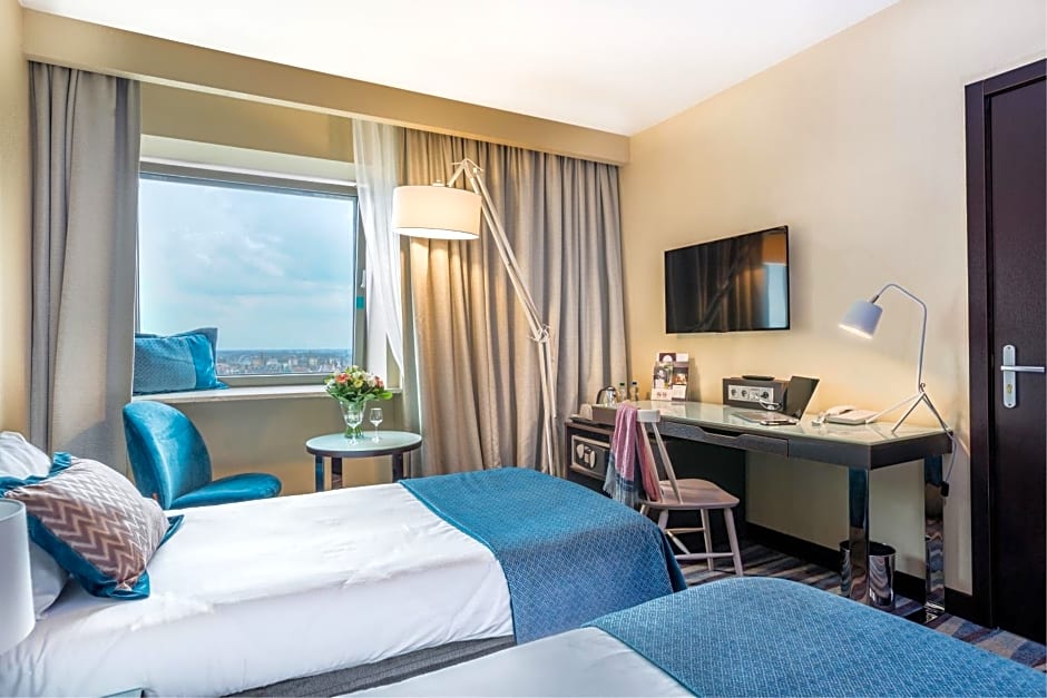 A comfortable, air-conditioned family room has two connecting rooms: one with a queen size bed 160x200 cm, second with two separate single beds 100x200 cm each. Two bathrooms (one with shower, second with bathtub), coffee&tea facilities, safe and mini-bar and flat TV will help you to relax with your family. The room is located on higher floors and offers a stunning view over the Old Town or historical Shipyard. The extra amenities like coffee machine, bathrobe and slippers are available in room with a double bed.