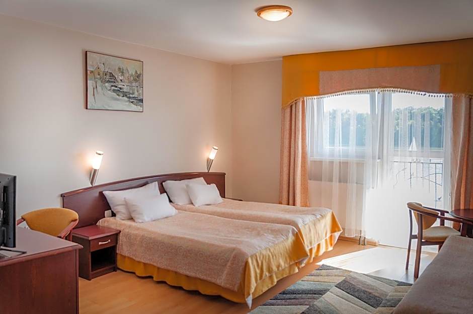 For those traveling with family or friends, the hotel offers rooms with 2 beds and Lake View, complete with a balcony. These rooms accommodate 2 adults and 1 child and ensure a comfortable stay for all guests. Whether you're planning a couples' getaway or a small family vacation, Hotel Na Skarpie has the perfect room options to suit your needs.