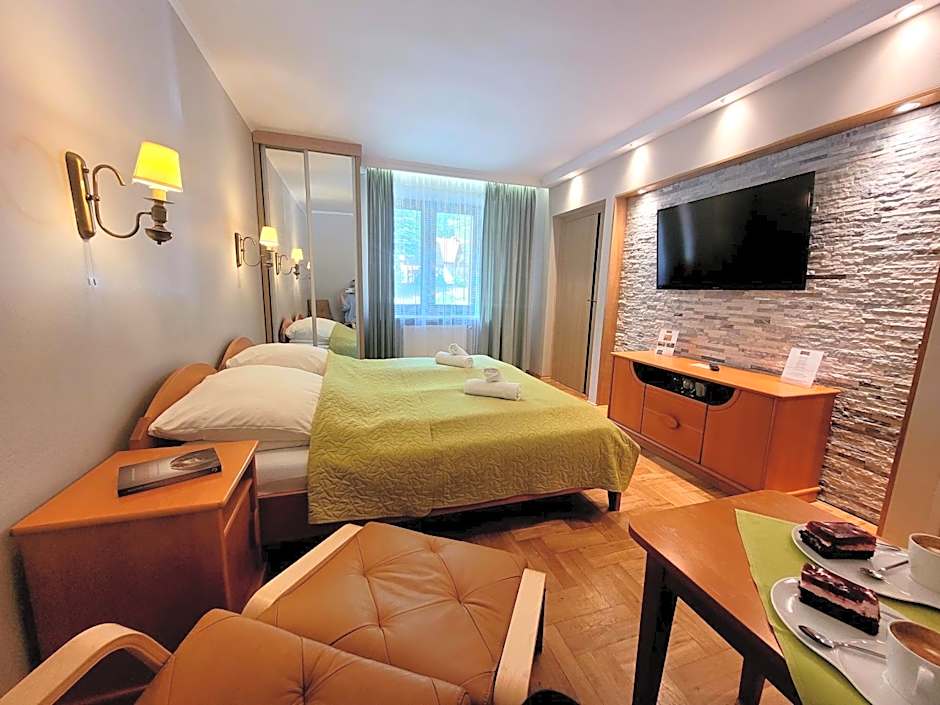 In addition to the complimentary Wi-Fi and shuttle service, this hotel offers an array of features such as a bar, restaurant, room service, and a 24-hour front desk. Whether you want to unwind on the sun deck, explore the garden, or enjoy a meal at the on-site restaurant, Rezydencja Leśny Dwór provides everything you need for a delightful stay. And with free private parking on site, you can easily explore the surrounding area at your convenience.