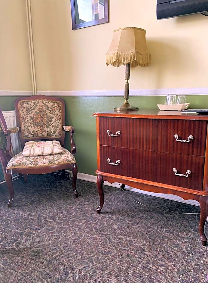 A spacious room with a private bathroom. It includes a wardrobe, coffee table and a 32" plasma TV.