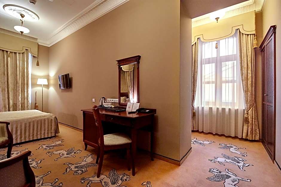 A more spacious, air-conditioned room carefully decorated with period furniture. There is a bath or a shower in the bathroom. It features a flat-screen TV with satellite channels, a laptop safe and a mini-bar with free water bottle and coffee and tea making set. There are also free, brand toiletries and a hairdryer in the bathroom.