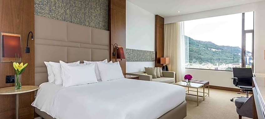 Com 585 avaliações de hóspedes satisfeitos, este hotel é altamente avaliado por seu serviço excepcional e vistas deslumbrantes das montanhas. O NH Collection Bogotá Royal Teleport é uma escolha perfeita para viajantes que buscam conforto e luxo durante sua estadia em Bogotá. Os preços dos quartos começam a partir de apenas $63, tornando-se uma opção acessível para quem busca uma experiência de alto nível. Faça sua reserva hoje e aproveite o melhor de Bogotá no NH Collection Bogotá Royal Teleport.