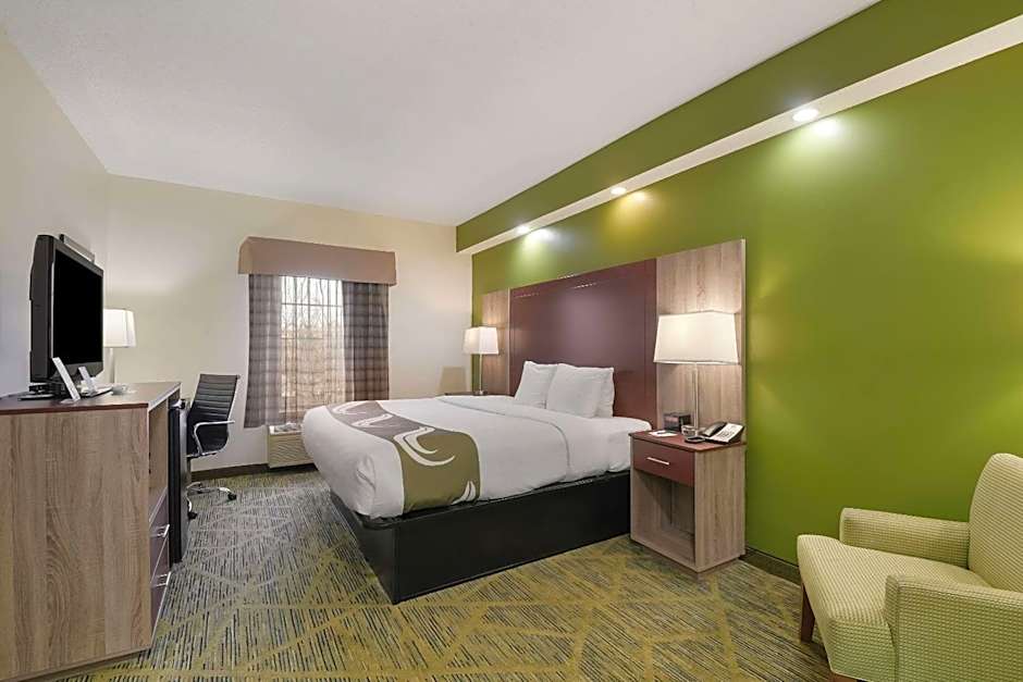 Falando em quartos, o [Quality Inn Alcoa Knoxville] tem uma variedade de opções para escolher. Se você está procurando um ambiente aconchegante e íntimo, o Quarto King será perfeito para você. Com uma espaçosa cama king-size, comodidades modernas como máquina de café, canais via satélite e um banheiro privativo com banheira, você terá tudo o que precisa para uma estadia confortável.