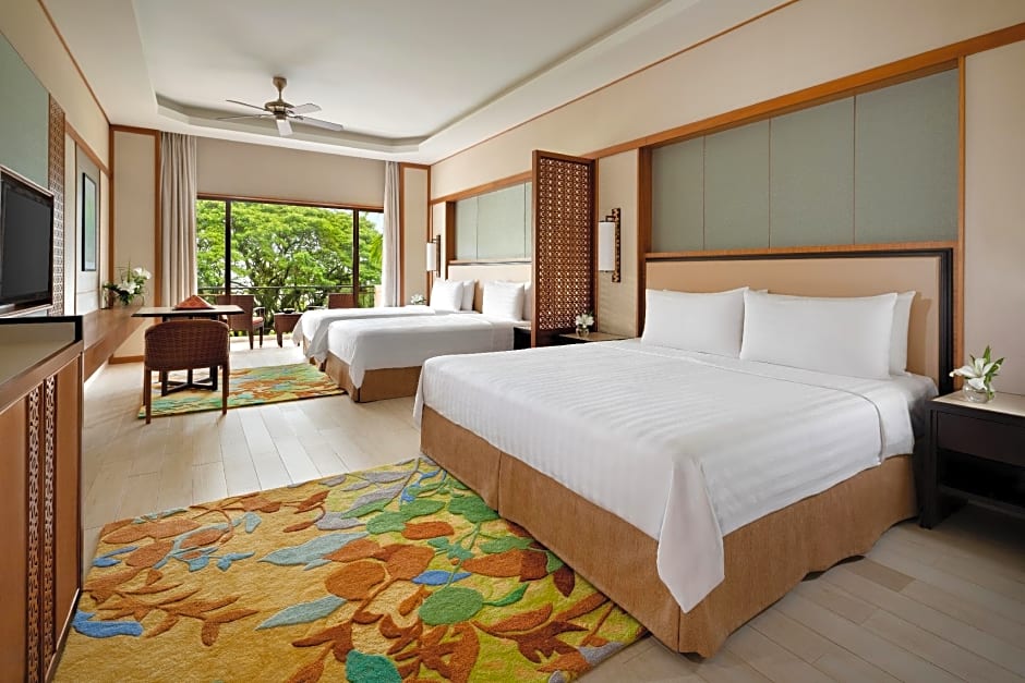 Shangri-La Rasa Sayang, Penang oferece um refúgio ensolarado à beira-mar em Batu Feringgi, com opções gastronômicas no local que vão do Spice Market Cafe — com sabores chineses, japoneses, coreanos e asiáticos — ao clima romântico do Feringgi Grill e ao charme casual do Pinang Bar. O acesso direto à praia coloca a areia ao alcance das mãos, complementado por duas piscinas ao ar livre (uma para crianças) e um deque solar para dias preguiçosos ao sol. Estacionamento privado gratuito e Wi-Fi facilitam os planos, enquanto o serviço de quartos adiciona um toque no quarto e o centro de fitness ajuda a manter-se ativo.