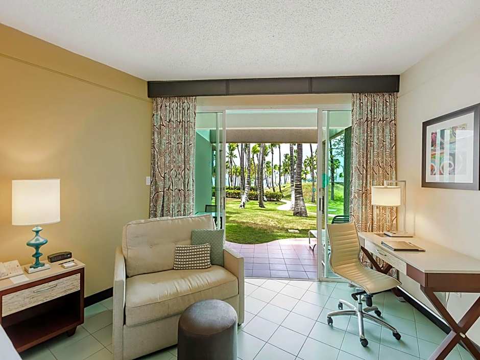 balcony, terrace, hammock, parlor, 2 LCD TVs, WiFi Make this recently renovated suite your home away from home, with separate seating and working areas. The Hilton Terrace Suite offers a king bedroom and connecting parlor room and a single sleeper chair. The parlor opens up to a spacious ocean view terrace with garden-style furniture and hammock, and is equipped with a 42-inch LCD TV, work desk and additional bathroom with whirlpool bathtub. Keep connected with WiFi or wired internet access. Catch up on work at the desk or relax watching your favorite movies on the bedroom's 37-inch LCD TV. The Serenity bath features luxurious bath amenities. Sleeps 4 adults.