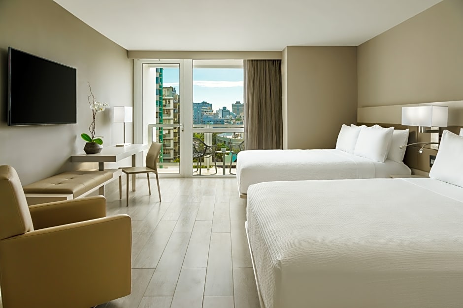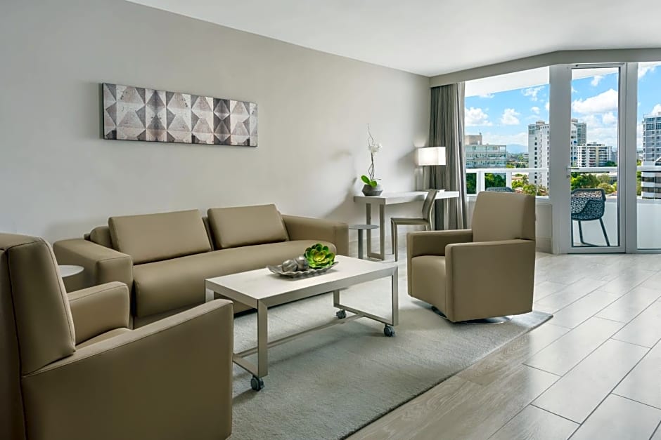 Choose from a variety of spacious and tastefully decorated rooms and suites. The One-Bedroom King Suite with Sofa Bed and Balcony offers a generous 624 square feet of space, making it perfect for families or groups. Enjoy the comfort of a king-size bed and a cozy sofa bed, and take in the fresh air from your own private balcony. For a more intimate stay, the King Executive Room with Balcony provides 344 square feet of space, perfect for couples or solo travelers. Whichever room you choose, you can expect exceptional service and a relaxing atmosphere during your stay at the AC Hotel by Marriott San Juan Condado.