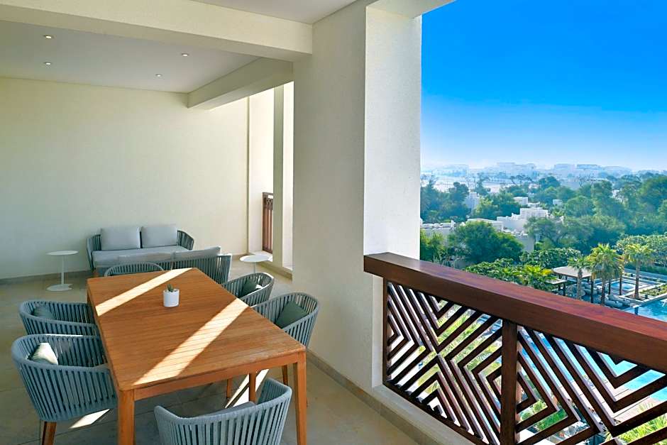 When it comes to dining, the hotel has a variety of restaurant options including Deli Kitchen, Al’Amma, Wa'ha, Parisa Al Messila, Veritas, and Elixir, offering cuisines ranging from international to Italian.