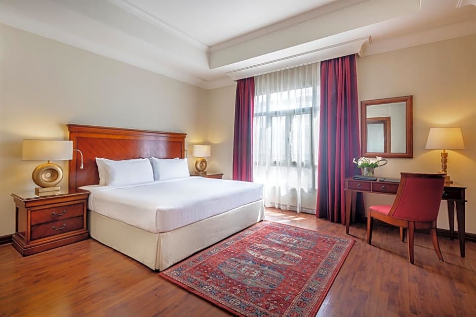 The room is 40 m2 in size with twin beds or king sized bed. It features a flat screen TV, coffee and tea making amenities, mini-bar, and work desk.