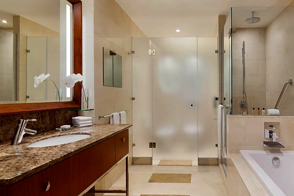 Now, let's talk dining! At the JW Marriott Marquis, the culinary journey is as diverse as the city itself. Indulge in a family-friendly feast at Sridan, where mouthwatering Middle Eastern dishes meet international favorites, ensuring everyone leaves satisfied. For a modern twist, Fuego elevates your dining experience with tantalizing Argentinian steaks that practically melt in your mouth. Explore further and step into the Shanghai Club for authentic Cantonese flavors or relax at The Den Piano Bar with international bites paired with live music. And let’s not forget the Pool Deck, where pizzas and other crowd-pleasers are made fresh to enjoy under the sun!