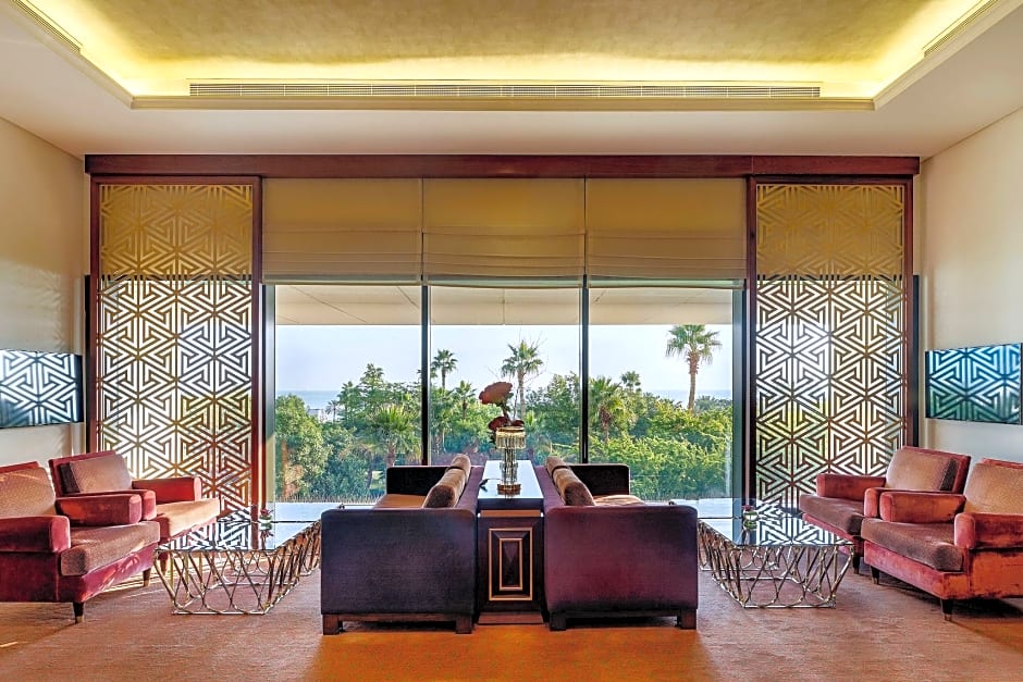 The hotel offers a variety of room types including Deluxe King Rooms, Junior Suites, Deluxe Twin Sea View Rooms, Head of State Suites, Club King Sea View Rooms, 2 Bedroom Executive Suites, Club Twin Sea View Rooms, Deluxe King Sea View Rooms, Executive Suites, Deluxe Twin Rooms, and Diplomatic Suites. The rooms can accommodate up to 3 adults and 1 child, except for the 2 Bedroom Executive Suite which can accommodate up to 5 adults and 1 child. Smoking is not allowed in any of the rooms. The bed sizes vary between King size and Queen size beds. The rooms range in size from 431 sqft to 2260 sqft.