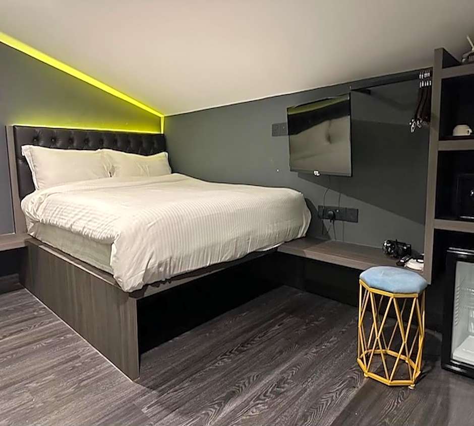 Room options provide a range of choices, from Deluxe Essentials and Deluxe to Studio Attic Singles with No Window, Loft Junior with a Double, and Plush with a Queen Bed, among others. The spaces vary in size from about 140 sqft to 258 sqft, with configurations that include 1 x Queen bed, 1 x Double bed, or 2 x Twin beds. Most rooms accommodate two adults (with occasional layouts allowing children), offering a variety of setups to suit different trips.