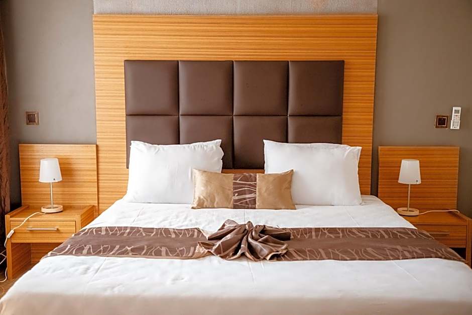 Guests can enjoy their time at Ndaru Luxury Suites by taking advantage of the hotel's leisure amenities. They can unwind and rejuvenate at the spa, Turkish/steam bath, and sauna. The hotel's indoor swimming pool and kids' pool offer the perfect place for relaxation and family fun. For those seeking activities, the hotel offers water sports facilities, a golf course, a tennis court, and a fitness center. Guests can indulge in a variety of cuisines at the on-site restaurants, which feature African, French, seafood, and steakhouse options. The rooftop BBQ restaurant also offers a blend of African, American, French, and Mediterranean cuisine. The hotel's sun deck, terrace, and garden provide ideal spots for leisurely moments and outdoor dining. Whether seeking relaxation or adventure, Ndaru Luxury Suites offers a variety of amenities for a memorable hotel stay.