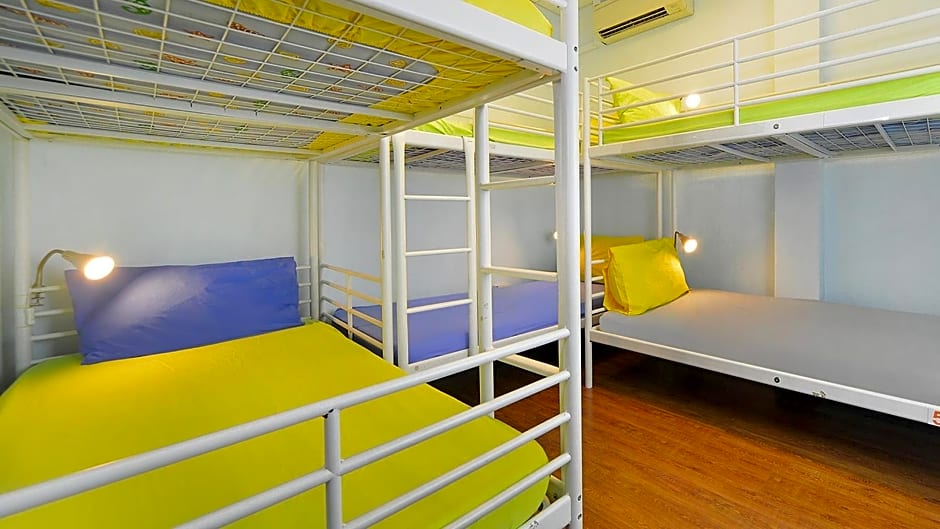 This air-conditioned mixed dormitory room can sleep up to 18 guests in bunk beds. Each sleeping space comes with adjustable reading lights and lockers. Bathroom facilities are shared. Rate is for 2 guests.