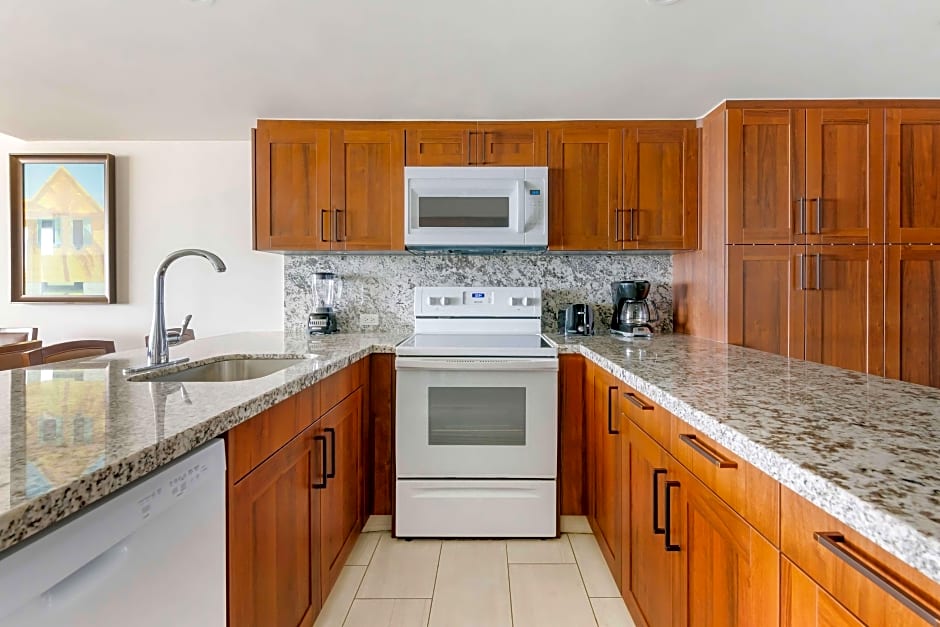 Discover comfortable accommodations featuring a king size bed and a queen size sofa bed in the living room. Fall asleep each night to the tranquil sounds of the ocean’s tide and wake up each morning to breathtaking ocean views from your balcony or terrace. Bathroom amenities include a walk-in shower, complimentary amenities and hair dryer. Enjoy the convenience of our full kitchen equipped with a refrigerator, microwave and dishwasher. Additional in-room amenities include cable/satellite television, VCR/DVD player, telephone, air conditioning and easy beach access.