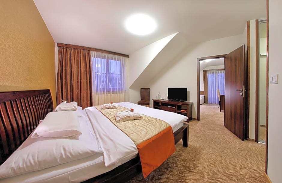 Now, let's talk about the rooms available at Penzion Drak. From cozy double rooms to spacious suites, this hotel has a variety of options to suit your needs. The Deluxe Double Room with Balcony offers a comfortable space for two adults and one child. The One-Bedroom Suite with Balcony is perfect for larger groups, accommodating up to four adults and one child. Each room is thoughtfully designed and equipped with modern amenities to ensure a pleasant stay. With options for different group sizes, Penzion Drak has the perfect room to fit your needs.