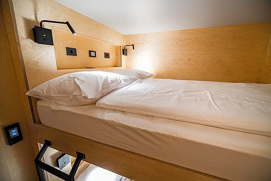 Room options span from compact capsule stays to more spacious private spaces. Capsule-style choices include a Capsule Single at 22 square feet for efficient, budget-conscious stays and various bunk-bed configurations for groups. For more space, the Deluxe Double Room offers 108 square feet with a Queen bed, and an Apartment provides 431 square feet with a Sofa Bed and a Queen bed—perfect for couples or small families. Family and Economy rooms accommodate 2 adults and 1 child, rounding out a range of options to fit different travel styles and budgets.