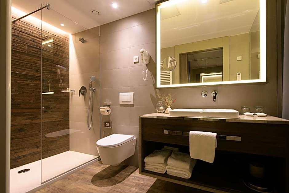This modernly furnished and spacious air-conditioned suite features a furnished balcony overlooking the park area and includes a flat-screen TV, a seating area with a sofa, a mini-bar and a safe. A private bathroom comes with a bathtub or a walk-in shower, free toiletries and a hairdryer.