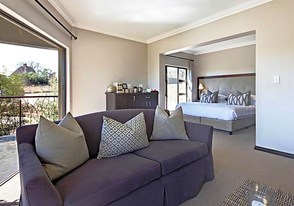 Offering views of the Roodeplaat Dam and indigenous bush, these suites feature a fireplace and open plan bath with hand basin and shower.