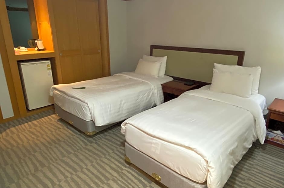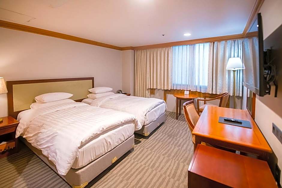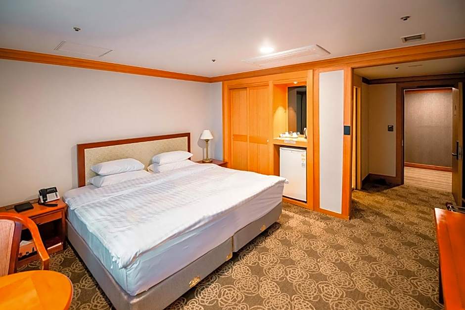 Hotel International Changwon offers various room types including Double, Twin, Suite, and Family rooms. The rooms range in size from 291 sqft to 592 sqft and accommodate between 2 to 3 adults with the option for an additional child. Smoking is not allowed in any of the rooms, and bed sizes vary from Queen to King size, with some rooms also featuring sofa beds. Some rooms come with complimentary access to the gym and sauna.