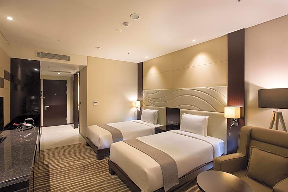 On-site dining includes Notting Hill and the Chinese-focused Hwang Ha, offering tasty options without stepping outside. A broad range of rooms is available, from the Sea View Triple Room and practical Twin Room to the more spacious Superior and various Deluxe configurations. For families and groups, several multi-occupancy choices exist, such as the Family Double Room (344 sqft) for up to 8 adults and 4 children, the Deluxe Family options (up to 8 adults and 4 children with a King bed), and the Deluxe, 2 Twin, which can accommodate up to 10 adults and 6 children.