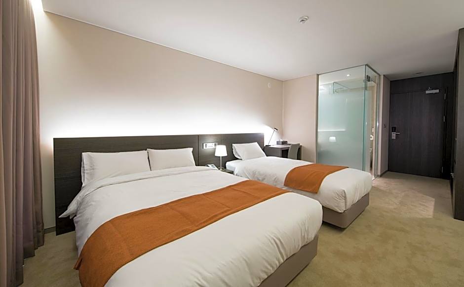 The Grandmer Hotel Jeju offers a variety of room options, including Standard Rooms, Deluxe Rooms, and Suites. Occupancy ranges from standard double occupancy to suites accommodating up to four guests. Smoking is not allowed in any of the rooms. Bed sizes range from queen to king, and room sizes vary accordingly.