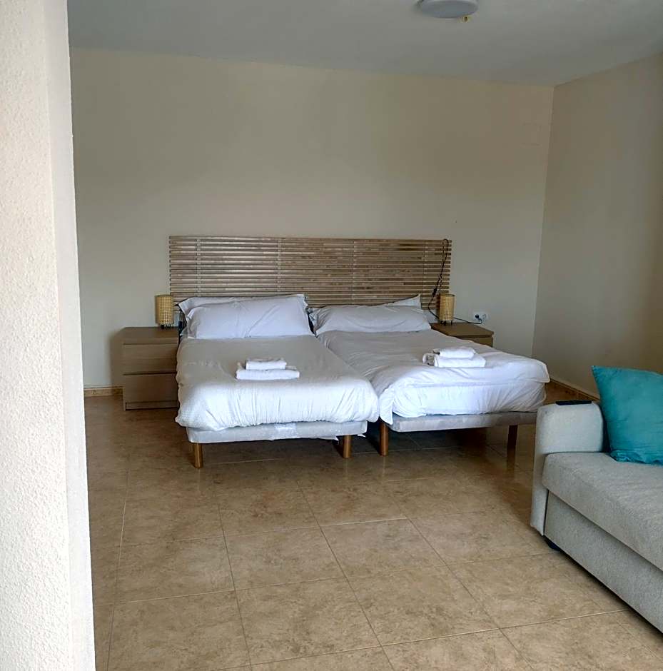 Rooms at Hotel Algorfa include single rooms, double rooms, twin rooms, and family rooms. Occupancy ranges from single occupancy in single rooms to up to four guests in family rooms. Smoking is not allowed in any of the rooms. Bed sizes range from single beds in single rooms to larger bed sizes in double and family rooms.