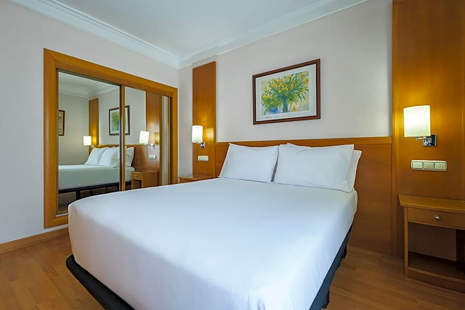 At Torreluz Senior hotel, the Double or Twin Rooms are available. These rooms can accommodate 2 adults and 1 child, with a room size of 215 sqft. Smoking is not allowed in these rooms. The beds in these rooms include 2 twin beds and 1 double bed.