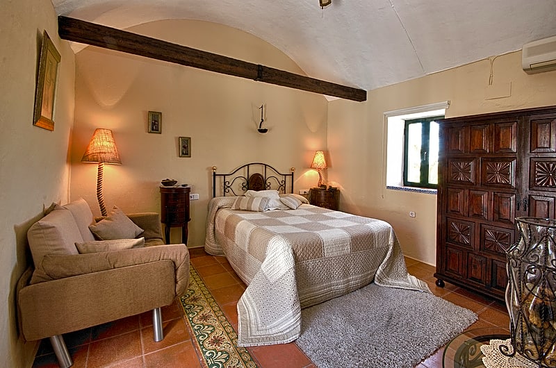 This room offers either an Arabian-style window or an Andalusian-style balcony and views over the Sierra del Santiscal or the plant-filled central courtyard. Each room is individually decorated and features antique 17th-century furniture.