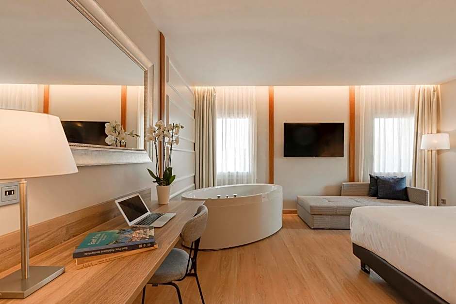Guests will have a special experience as this double room features a hot tub. Offering free toiletries and bathrobes, this double room includes a private bathroom with a walk-in shower, a bath and a bidet. The spacious air-conditioned double room offers a flat-screen TV with satellite channels, soundproof walls, a mini-bar, a tea and coffee maker as well as garden views. The unit offers 2 beds.