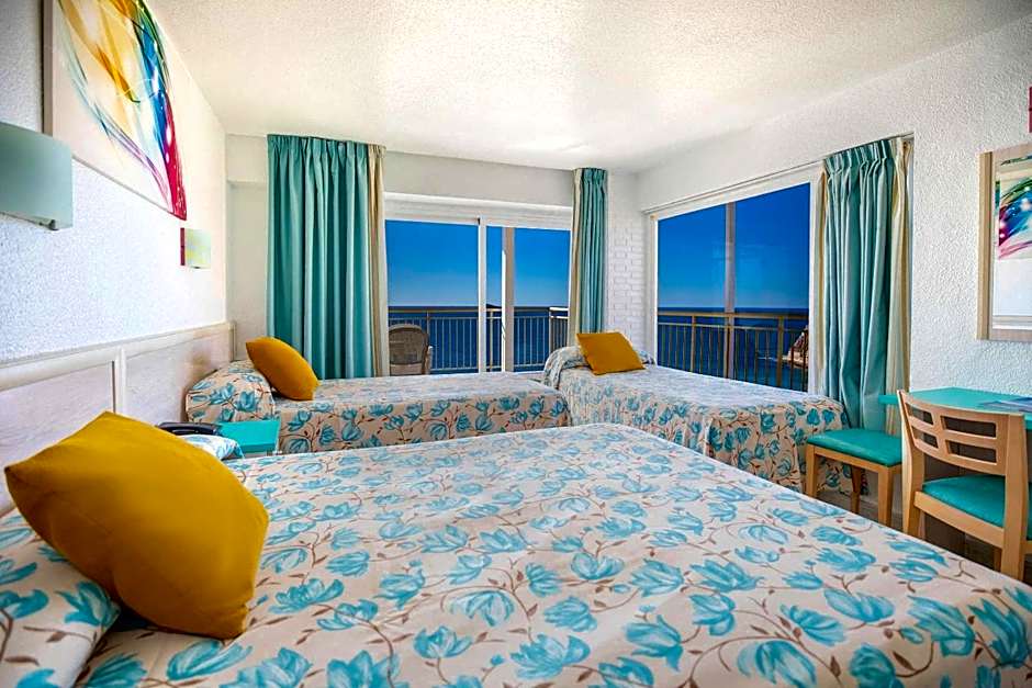 Hotel Servigroup Torre Dorada offers a variety of rooms with sea views, accommodating from 2 to 4 adults, and sometimes including children. Smoking is not allowed in any of the rooms. The bed types mainly consist of Twin beds, with some rooms also having Double beds or Extra beds available. Room sizes vary but are within the range of 172 sqft to 237 sqft.