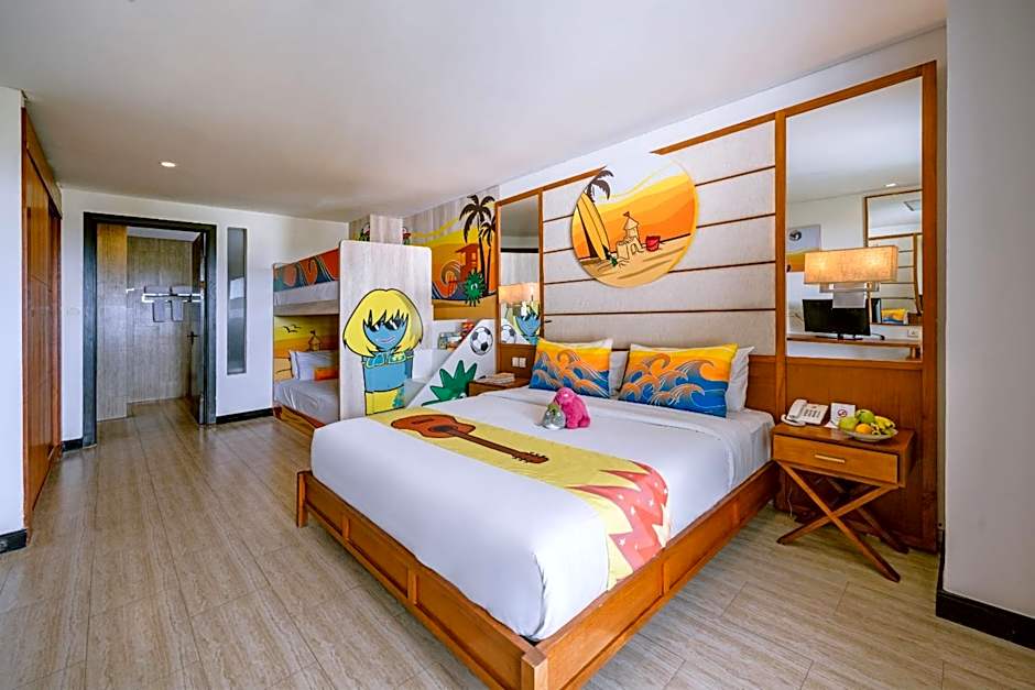 Room options include a Standard Room (TwinDouble), 161 square feet, non-smoking, accommodating 2 adults and 1 child, with two twin beds and one double bed. Also offered are DoubleOrTwin Room (non-smoking) for 2 adults and 1 child, and Apartment 2 Room (non-smoking) for 2 adults, providing flexible choices for different travel parties.
