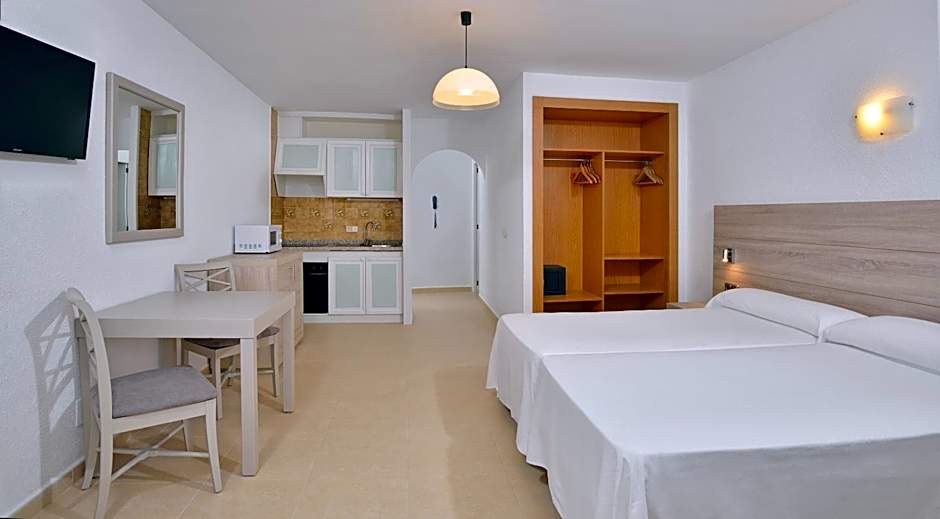 This comfortable air-conditioned apartment includes a double or twin bedroom and a living-dining room with a double sofa bed and TV. There is a well-equipped kitchenette, a bathroom and a private terrace with views of the pool, garden or the town.