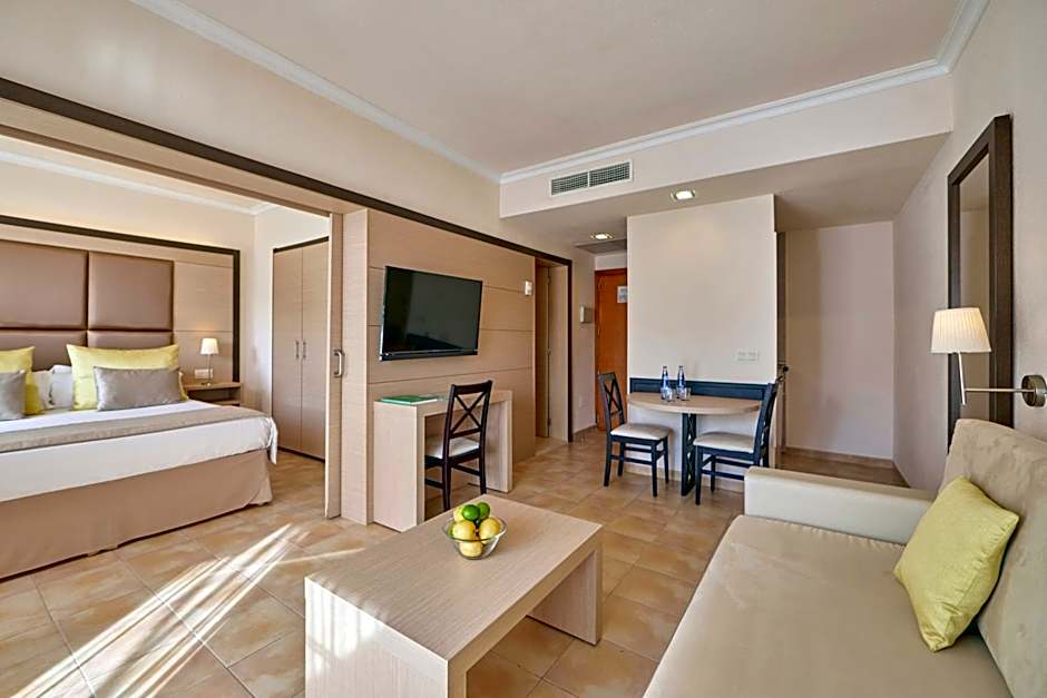 But that’s not all—Zafiro Cala Mesquida is a vibrant hub for family fun and entertainment! Dive into the sparkling outdoor swimming pool, surrounded by palm trees and sun loungers, perfect for soaking up the sun with friends and family. For the little ones, there's a dedicated kids-only pool featuring a shallow end and a plunge area, where they can splash to their hearts' content. When the sun dips down, gather your family for live music performances that will have you tapping your feet and putting a smile on your face while creating memories that will last a lifetime.