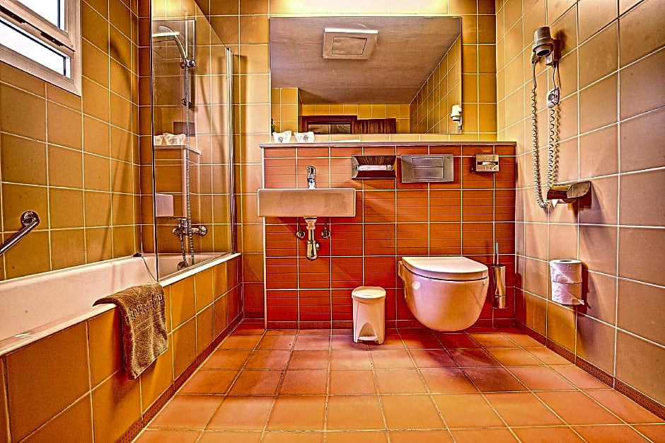 This bright room offers a balcony or terrace and pool view. It has satellite TV, a fan and a rental safe, while the private bathroom comes with a hairdryer.