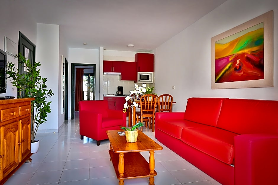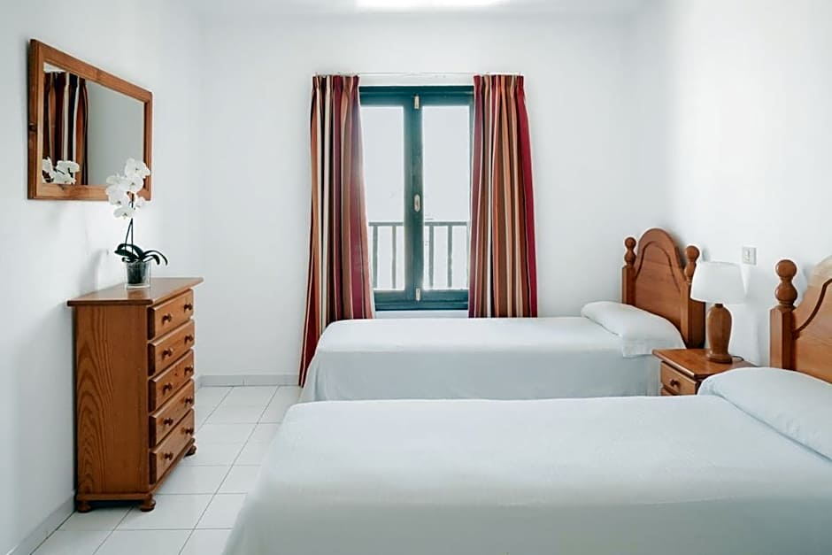 This modern apartment has a living room with a balcony and pool views. There is a sofa bed, a flat-screen TV and a kitchen with an electric hob, kettle and microwave. It has a twin bedroom. A safe is available for an additional cost.