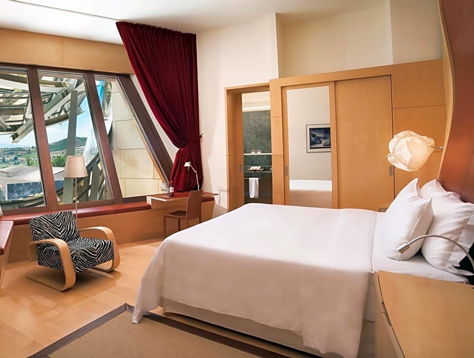 Offering great views over Frank Gehry's building and the vineyards, this exclusive suite features luxury décor and plenty of space. It comes with a seating area, a LCD TV with satellite channels, a mini-bar and a Nespresso coffee machine. This soundproofed room has 1 king-size bed and a private marble bathroom with a bathtub and a rain shower. Bathrobes, slippers and luxury toiletries are provided, as well as free WiFi.